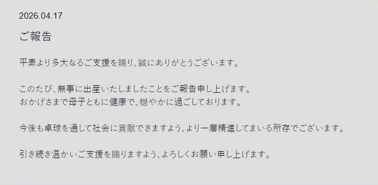 话不多,意思很清楚:孩子平安、她也平安,谢过大家的关心,她还想继续为乒乓球做点事。就这么几行字,像一口热汤,喝下去不烫嘴,却能把胃暖起来。