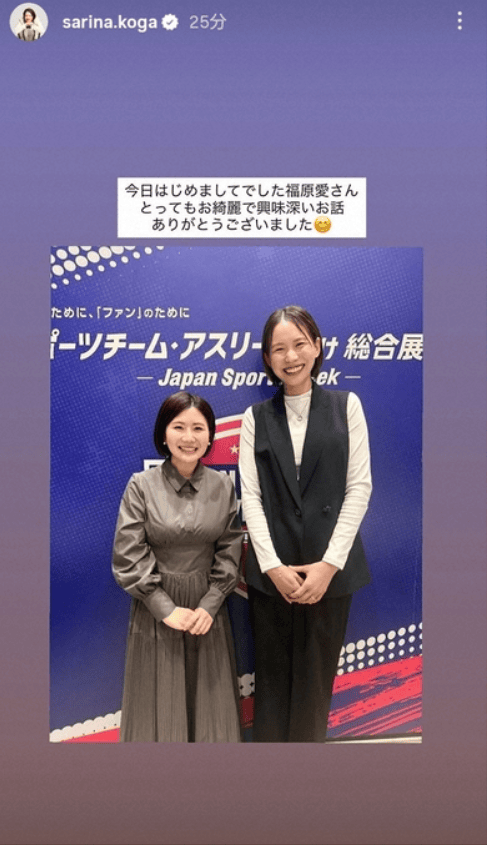 真正让讨论炸开的,是她第二天的“现身痕迹”。4月18日,她低调出席活动,被日本女排名将古贺纱理那在社交平台晒了合照。