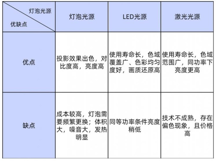 投影光源经历了从传统灯泡到LED再到激光的发展历程。每种技术都有其特点。